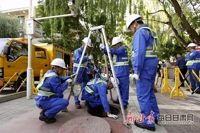 上午9时,兰州城市供水(集团)有限公司党委书记、董事长来耀明宣布演练正式开始。东区管线所参演人员按照预案,进行场景模拟操作。现场4名工作人员,穿戴好个人防护用品,携带有限空间作业防护用具设备,迅速进入作业现场,设立反光路锥护栏及交通警示牌,对作业现场进行警示隔离。随后按照有限空间作业规范程序,打开作业井室,对井室强制通风30分钟,并用四通道气体检测仪对井室内空气进行检测,确认安全的情况下,一名参演人员通过起吊式三角架、绞盘等设备进入井室,另三名参演人员做好辅助和安全监护。