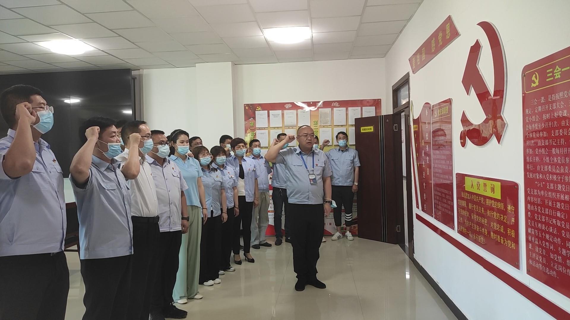 重温一次入党誓词。水磨沟区供水公司党支部书记、经理冯正路带领全体党员在党旗下庄严宣誓,洪亮的宣誓声像是在捍卫党旗的庄严与神圣,入党誓词就是在给每位党员“加油、充电、补钙。”
