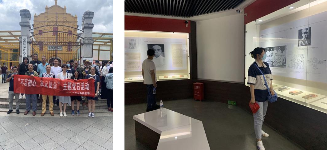 5月21日,通用水务四支部组织了一次实地教学主题党日活动,带领全体党员和发展对象开启了一次党史学习的红色之旅。以陆军讲武堂为起点,依次参观了云南解放纪念馆、云南起义纪念馆、朱德故居。惊心动魄的历史事件、真挚感人的爱国情怀,锈迹斑驳的生活用品似乎又把我们带回了那段难忘的岁月,再一次接受了灵魂的洗礼。