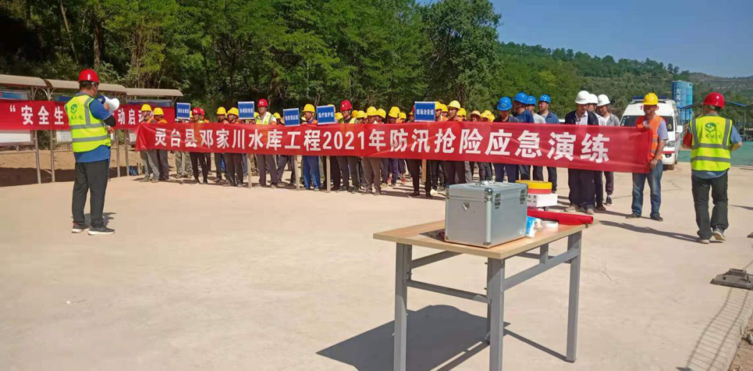 为确保邓家川水库工程施工安全及现场人员生命财产安全,提高项目参建人员面对突发事件的应急能力。6月5日,源通水务公司组织施工单位和监理单位开展了防洪度汛应急演练。