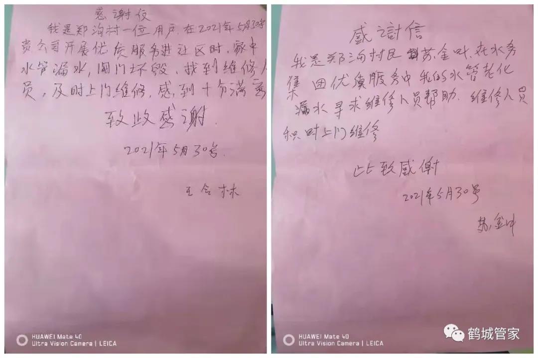 其中,党员维护组充分发挥“党员供水服务先锋队”的模范带头作用为社区用户特别是孤寡老人、光荣军属、特困户等特殊群体进行现场检测供水压强的上门维护。主动找寻造成水压较小的问题根源,对用户表后漏水或家中漏水器具进行免费维修,共进行义务检修700余次,检测水压180余次。党员维护组不怕脏、不怕累,业务熟练的贴心服务不仅得到广大群众的一致好评,还收到石林郑沟村两位村民的感谢信。