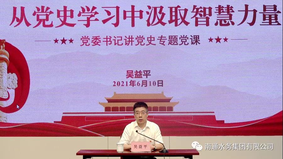 参观结束后,集团党委书记、董事长吴益平以《从党史学习中汲取智慧力量》为题,从“党史是什么”、“党史学什么”、“党史怎么学”三个方面出发,结合自身学习体会,为中层以上干部讲了一堂党史专题党课,教育引导集团党员干部从百年党史中汇聚精神滋养、汲取前行力量,以昂扬姿态奋力开创水务高质量发展新局面,为建设“全省一流、长三角有影响、全国有特色”水务企业作出积极贡献。