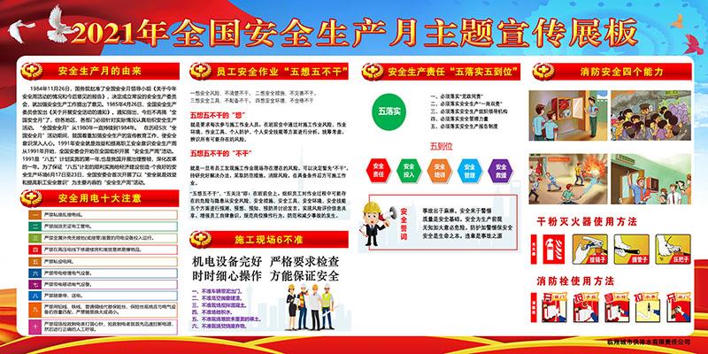 本次“安全生产月”系列活动得到了公司党政领导班子的高度重视和大力支持。一是召开“安全生产月”动员会,并围绕活动主题做出安排部署,提高员工对“安全生产月”的知晓度和参与度。会议由安全生产分管领导副总经理徐文宇主持,总经理郭卫华作动员讲话及传达学习相关安全生产文件精神。组织观看《生命重于泰山——学习习总书记关于安全生产重要论述》电视专题片及《人民至上 生命至上》主题宣教片。二是在活动期间紧扣主题开展内容丰富多彩的安全生产知识宣传教育活动。将组织开展一次安全生产综合大检查,发现问题及时上报整改,让安全生产隐患“扼杀”在萌芽状态。同时开展安全生产基础知识竞赛,通过展板、布标、宣传画、微信等多渠道、多层次、全方位广泛开展安全生产教育,提高活动的影响力和覆盖面,营造一个“人人懂安全,处处有安全、事事保安全”的良好氛围,推动公司安全生产工作持续稳定发展!