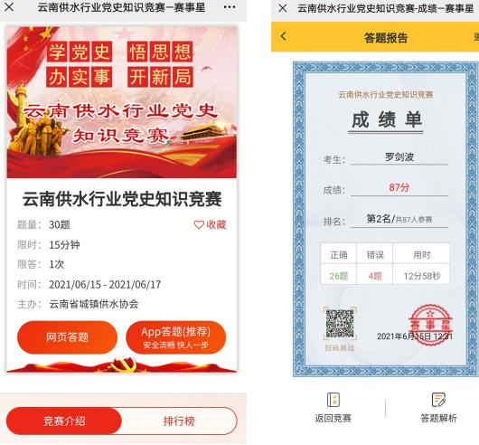 凤庆县供水公司参加省水协组织的党史知识竞赛