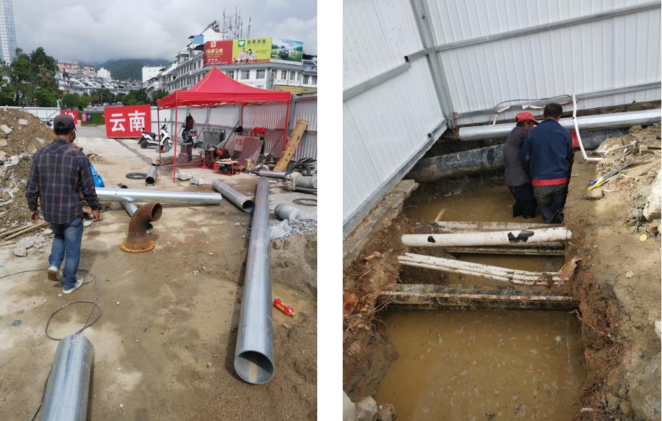 为配合这一重大项目建设,6月12日8时,凤庆县供水公司在做好供水调度和相关事宜后,同步对工程的给水管线作迁移、改造和提升。施工现场,工作人员克服管道改迁工程中遇到的各种困难,及时优化施工方案和工程实施计划,于23时40分有序完成新老管线割接、安装,恢复供水,切实保障重点工程的顺利推进。