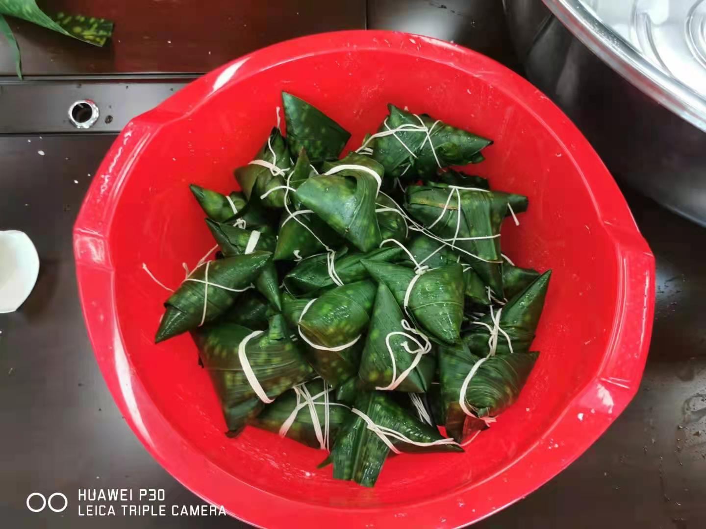 参加此次活动的干部职工共93人,大家三两成群提前来到活动地点,在大家的欢声笑语中,节日的氛围愈加浓厚。时间一到,首先进行猜谜语活动。职工纷纷踊跃参与,或驻足凝思,或小声讨论,其乐融融。接着是万众期待的包粽子,将提前准备好了粽叶和糯米分发给参与活动的人员,大家聚集在一起,互相帮助。在大家的“巧手”下,将两片粽叶重叠,弯曲呈一个漏斗的形状;然后,舀一些糯米用手捏紧;接着,将上面的粽叶向下压住开口处,多余的粽叶回折;最后,用绳子将粽子绑起来。很快,一个个漂亮、饱满的粽子就包好了。