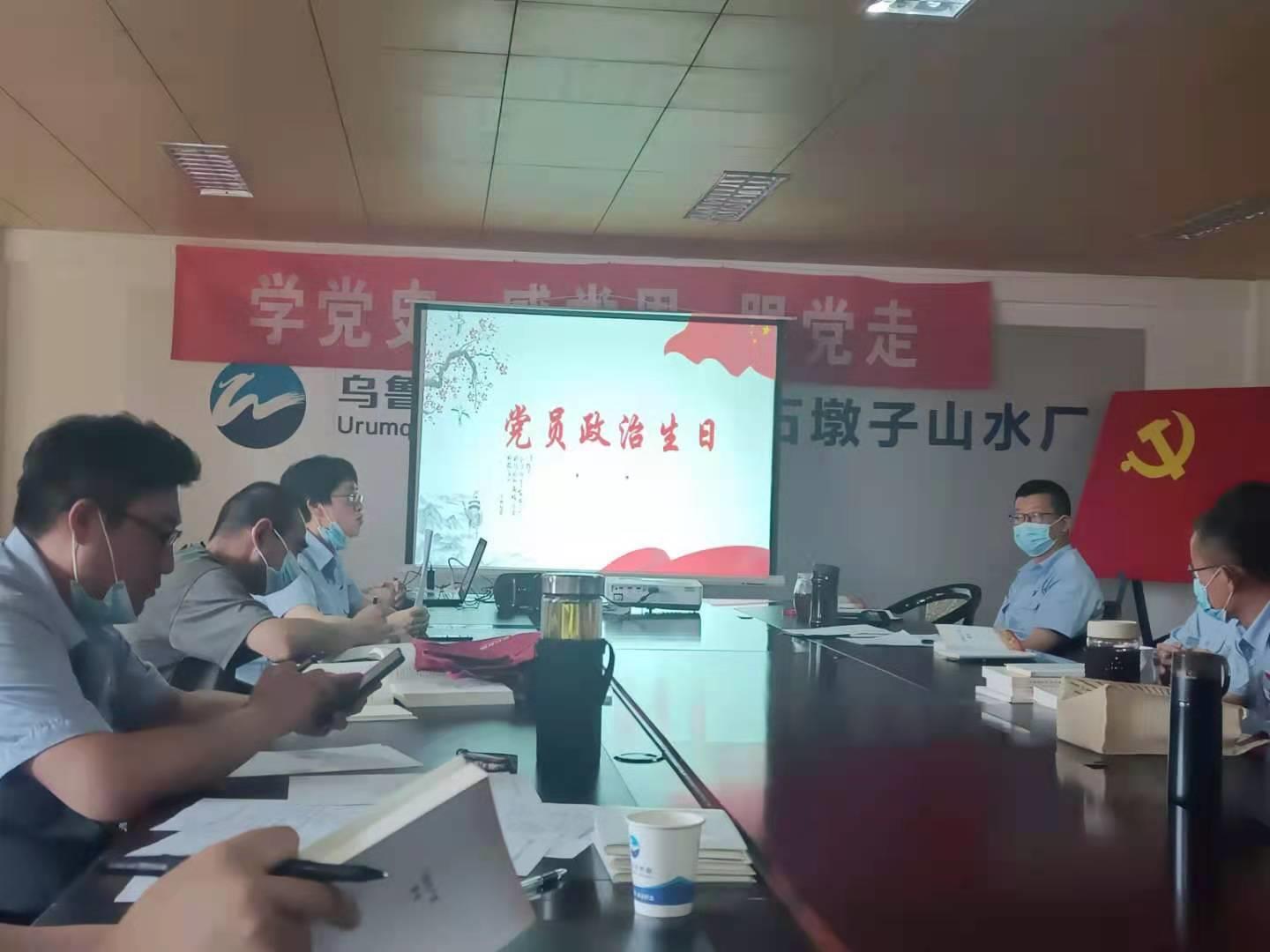 根据水厂开展党史学习教育的方案及主题党日活动流程,在党支部的统一安排下,为水厂第二季度入党的同志过政治生日,生日会上,乌鲁木齐水业集团石墩子山水厂党支部书记、厂长张伟民,党务专干赵宴,化验员申婷婷,安全员郭金财作为分享者,围绕铭记入党那一天、如何践行党员义务,从不同角度讲述了在抗疫一线及供水一线中的亲身经历和深刻感受,展示了共产党员的不忘初心,勇于担当的先锋模范精神,娓娓道来的入党故事、同志们语重心长的祝福,给大家上了一堂直抵人心的“情境党课”。
