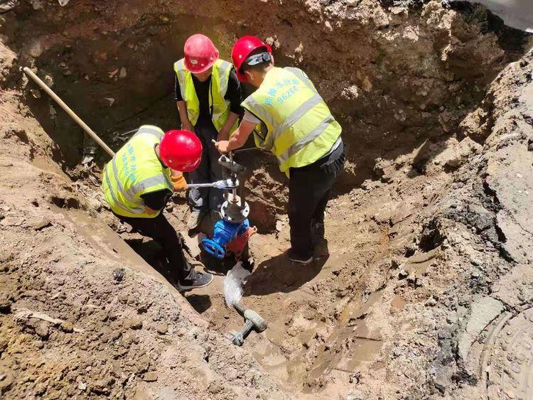 6月21日,供水管网维护分公司管网维护一所接到居民求助,回民区三顺店小区电影公司家属院及周边幼儿园用水困难,管网维护一所及时抵达小区进行排查,经过排查测压后发现,因小区内部水压不足,导致居民用水难。经维修人员现场协商决定对周边管网进行改造,增加小区管网压力,缓解居民用水问题。6月22日早8:30分,分公司检漏所进行管道现场勘测,对故障周围进行详细摸排定位,对故障点准确定位后开始对电影家属楼的管道进行整体环通改造。