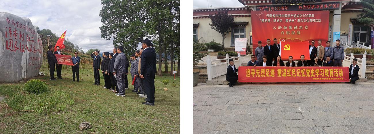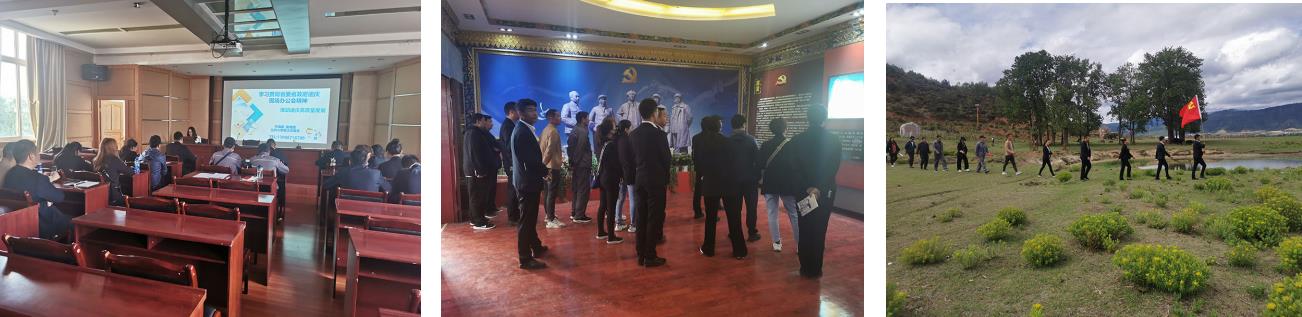 15:30到达小中甸后,公司党员列队整齐来到了小中甸月亮湖清香树—红二、六军团长征入藏第一站遗址,见证了在艰苦岁月里,革命志士坚持革命斗争、严守党的纪律的光辉历程。红军进入藏区后规定了几条铁的纪律:一是不打土豪、分田地,二是没有人在家的绝不进入家中宿营。1936年4月27日晚红二军团四师前卫十模范执行党的民族政策,二团到达小中甸镇团结村石麦谷自然村后,将宿营地选择在村外山边的清香村,在寒风凛冽的高原山地野外宿营。