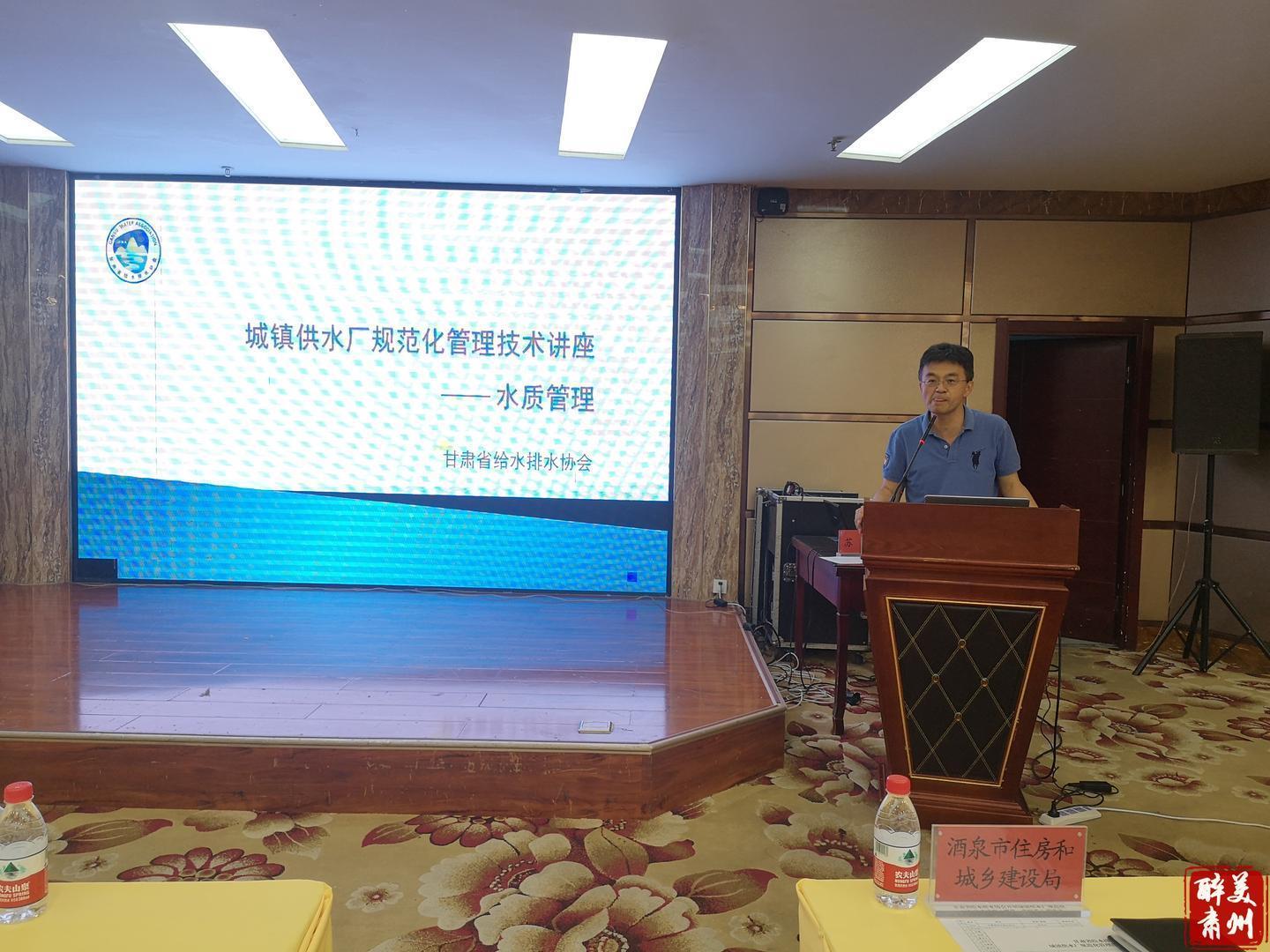 近日,甘肃省给水排水协会在肃州区举办城镇供水厂规范化管理技术讲座,嘉峪关、瓜州、玉门、金塔、肃州区等5家供水单位和2家民营供水企业共60余人参加。