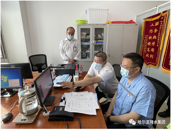 排水窗口工作人员张凯向董事长详细介绍了排水接设信息的审核、受理和办结反馈全流程,并就目前正在运行的政务服务平台和工改平台的使用情况进行了汇报。自哈市工改平台运行以来,排水窗口共办理事项40余个,所办事项均在承诺时限内完成,受理状态为“绿灯”。通过全员的努力,排水窗口工作得到业务主管部门的高度认可。