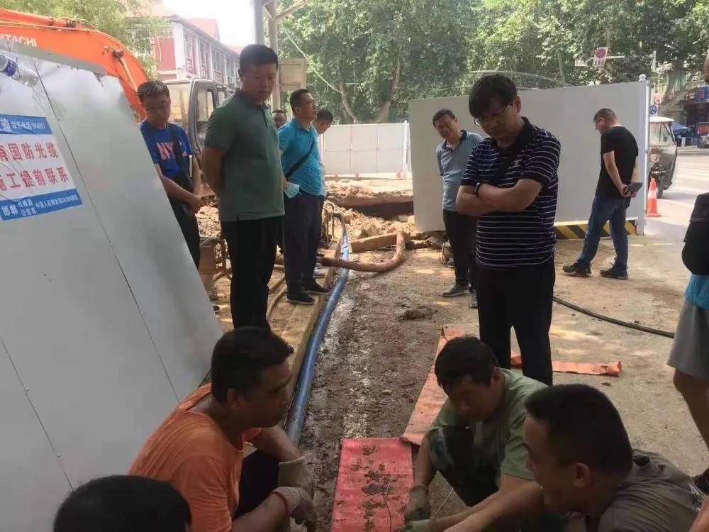 ●6月28日上午,供水工程处工作人员来到代建费项目阳光东尚名邸,查看市政管线的具体位置,并确定后期顶管施工方案。同时提醒施工人员在顶管作业时,做好防尘覆盖措施,正确开放雾炮机和摆放安全警示牌,确保现场安全无事故。
