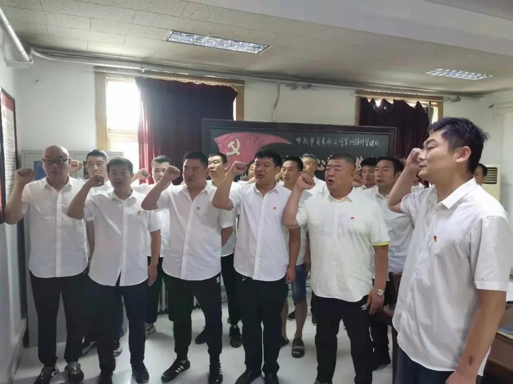 ●6月28日,管网处党支部组织党员重温入党誓词,并要求大家牢记入党誓词,自觉加强党性锻炼,遵守和维护党章党规,服从党的组织纪律和组织决定,继承和发扬党的优良传统,在本职岗位上,以身作则,率先垂范,争做一名优秀共产党员。