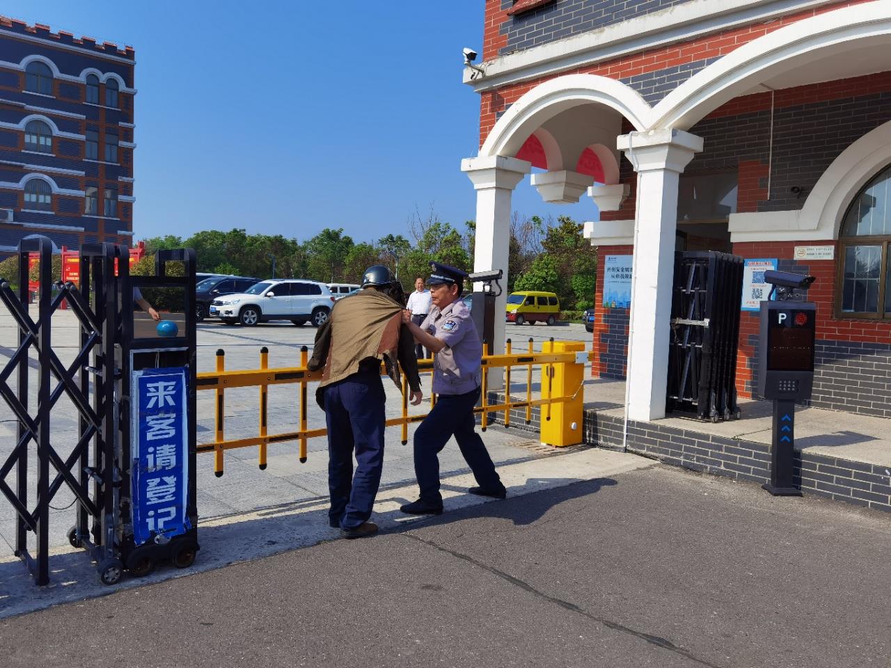 本次应急演练,模拟一名男性"恐怖分子"不愿出示证件登记,强行要进入公司院内,男子与保安人员发生争执后,欲从电子道闸强行翻入。事件发生后,公司迅速启动反恐应急处置预案和紧急联动机制,各部门紧急联动奔赴现场。紧接着,反恐领导小组组长命令启动预案,保安巡查队员携带防爆盾牌、抓捕叉、防爆棍等快速赶赴现场,并疏散围观现场群众。到达现场后,应急小组成员立即对现场实施外围警戒,抓住时机进入现场后与保安协同配合,成功将“恐怖分子”抓获。