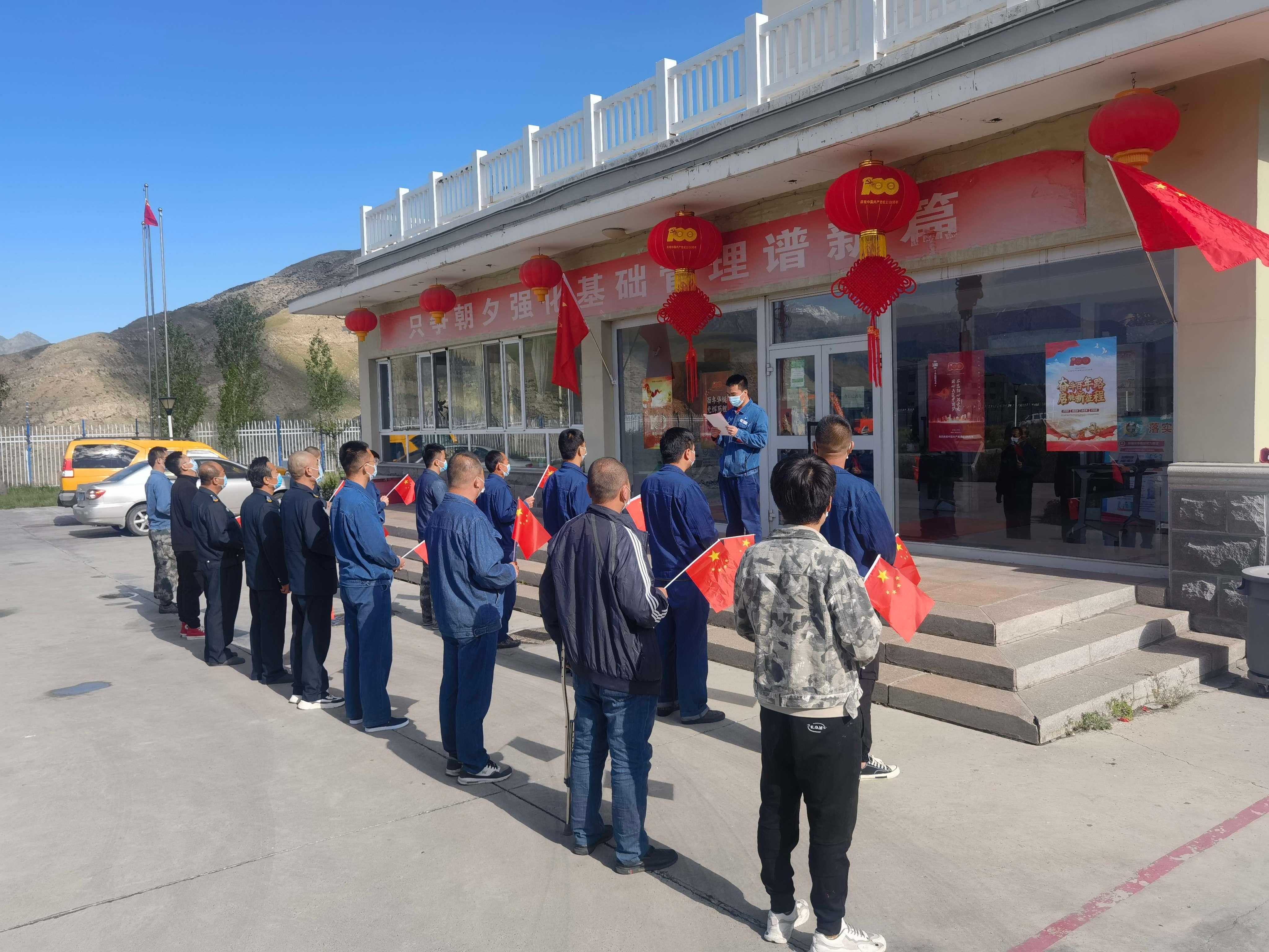 10点,伴随着庄严的《义勇军进行曲》,鲜艳的五星红旗冉冉升起,全体职工肃立致敬,注视着飘扬的五星红旗,同唱国歌,表达了对党和祖国矢志不渝的热爱之情。