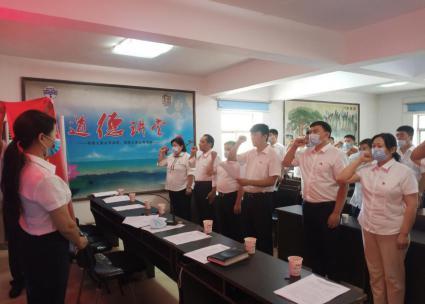 活动在庄严的国歌声中拉开序幕。会议首先举行了纳新仪式,新疆吐鲁番市万泉水务有限公司党支部书记卢金明同志为新接收党员吾斯曼江·吾买尔同志配戴党徽,接着组织举行新接收党员入党宣誓和老党员重温入党誓词活动。面向鲜红的中国共产党党旗,全体与会党员举起右拳,铿锵有力的宣誓声响彻全场。