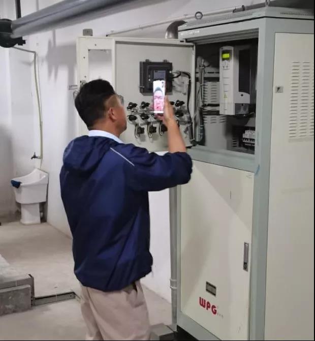 考虑到管道停水容易产生浑水现象,工作人员根据先前制定的方案提前打开管网末梢的4处消火栓进行排污、排气,尽量降低明日一早居民用水受到的影响。随着进水阀门开启到位,管网水压逐步恢复正常,小区增压泵房也恢复工作,工作人员利用语音视频远程与二次增压泵房维保人员保持沟通,确保增压设备稳定运行。
