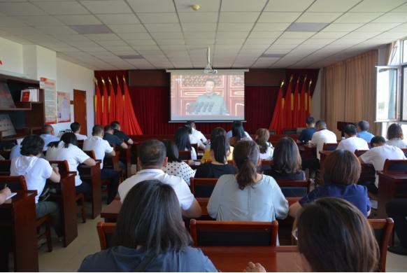 公司全体领导班子及办公区职工在三楼会议室集中观看大会直播,各部门、二级公司自行组织观看。