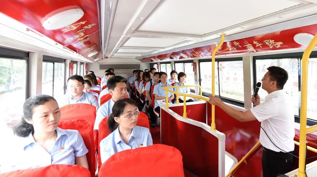 为响应党中央在全党开展党史学习教育的号召,聚力学党史、悟思想、办实事、开新局,着力营造良好舆论氛围,7月6日上午,南京水务集团组织开展了“永远跟党走,奋进新征程”南水先锋新党员学党史活动,通过乘坐红色巴士寻访红色印记,在红色沉浸式课堂重温入党誓词,观看雨花英烈视频等方式赓续初心,坚定理想信念。水务集团党委副书记朱继国带领2020—2021年新发展党员参加了本次活动。