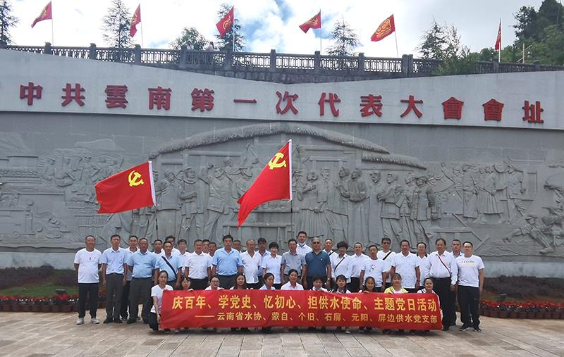 7月9日, 省水协、蒙自、个旧、石屏、元阳、屏边供水党支部在中共云南一大会址联合开展主题党日活动,庆百年、学党史,忆初心,担供水人使命。