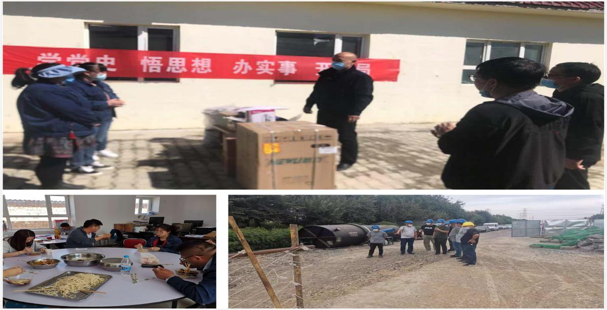 楼庄子供水工程项目施工现场,离市区60多公里,地处戈壁,气候环境恶劣,为保证施工进度,项目部的职工们驻守施工一线,吃饭成了难题。开展党史学习教育中,公司班子通过现场调研、听取干部职工意见,在不同施工标段建立了二个小食堂,组织党员志愿服务队将厨房用具送到施工一线,并打扫小食堂卫生。现在,项目部的职工们说,晚上一回到施工驻地,就有热气腾腾的饭菜,心里特温暖,疲劳感顿时消失了。早上出发前是我们爱吃的汤饭、哨子面……我们小食堂的饭,吃出了家味道,工作更有干劲了,特别感谢公司领导为基层职工群众办实事的用心。