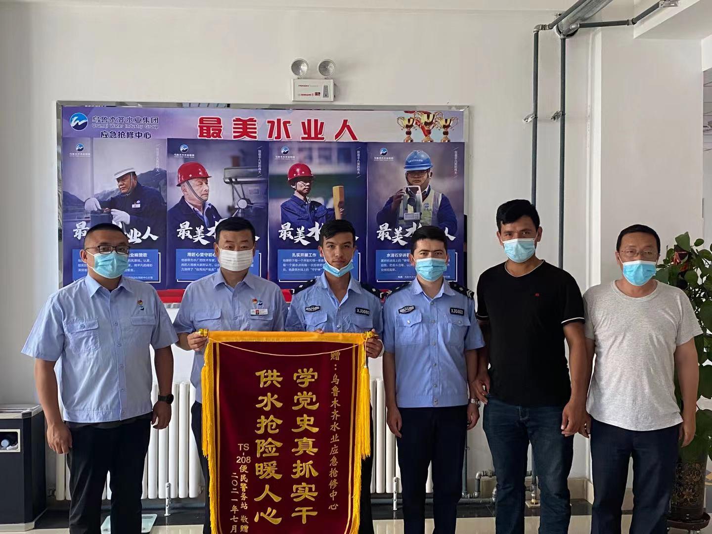 7月12日上午,天山区新华南路T-S208便民警务站与停车场负责人专程来到应急抢修中心,向中心赠予了“学党史真抓实干,供水抢险暖人心”的锦旗,对抢修中心高效的服务质量和工作态度表示由衷地感谢,锦旗对中心来说是肯定,是褒奖,更是责任和鞭策!