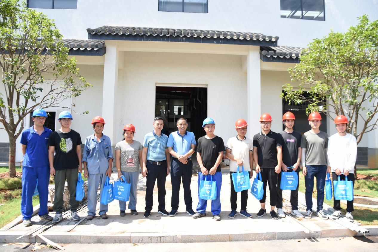 七月的三伏天,热浪袭人,为了切实保障一线员工身心健康,更好地开展工作,7月16日,黄山市总工会副主席陈超冒着高温带队来到黄山市自来水有限公司五水厂项目建设现场进行慰问,为建设人员送去各类防暑降温物品。