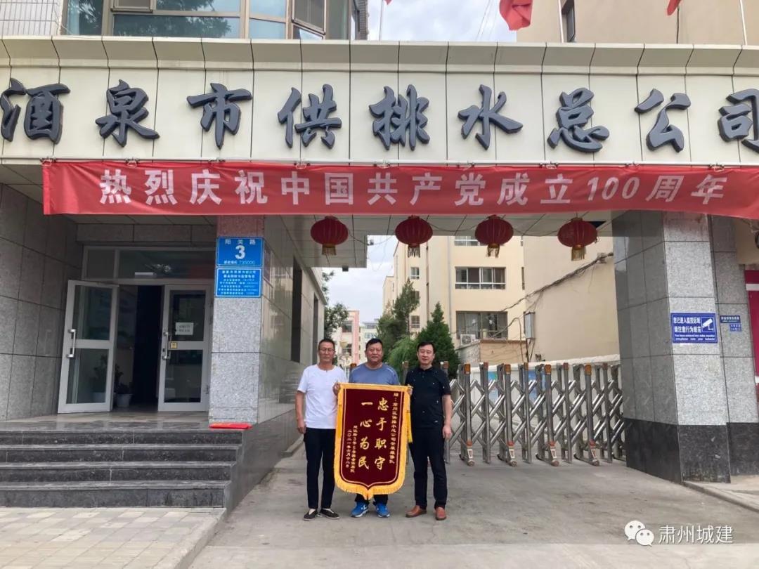 2021年7月21日上午,建设路3-5号楼3名居民代表将印着“忠于职守,一心为民”的锦旗送到了区供排水总公司。