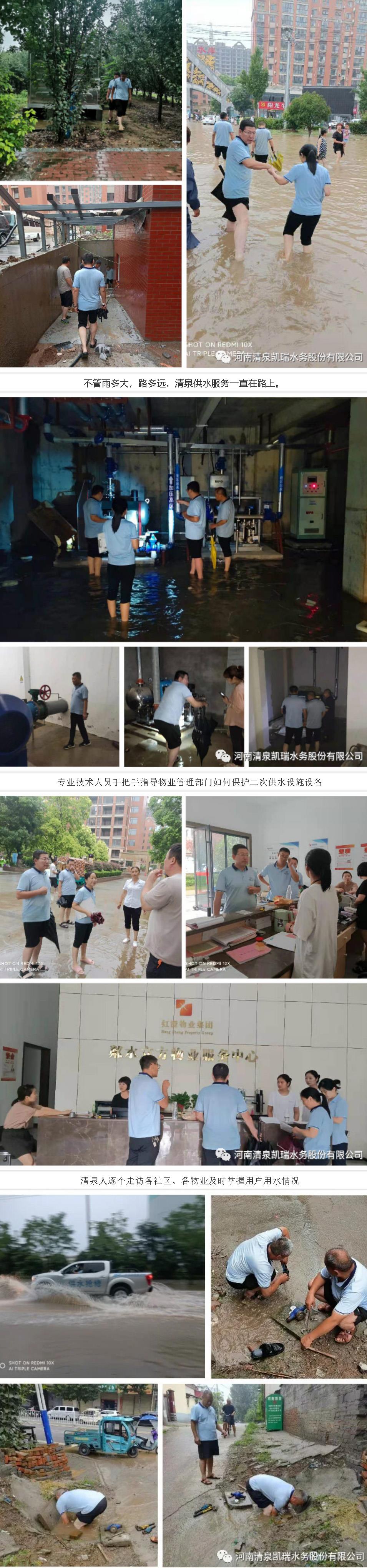 截至目前清泉水务公共供水一切正常,出厂水水量、水压、水质合格率100%,在奋力迎接新一轮暴雨的同时,清泉水务将会在供电正常的情况下全力保障人民群众的安全用水,请大家放心!!