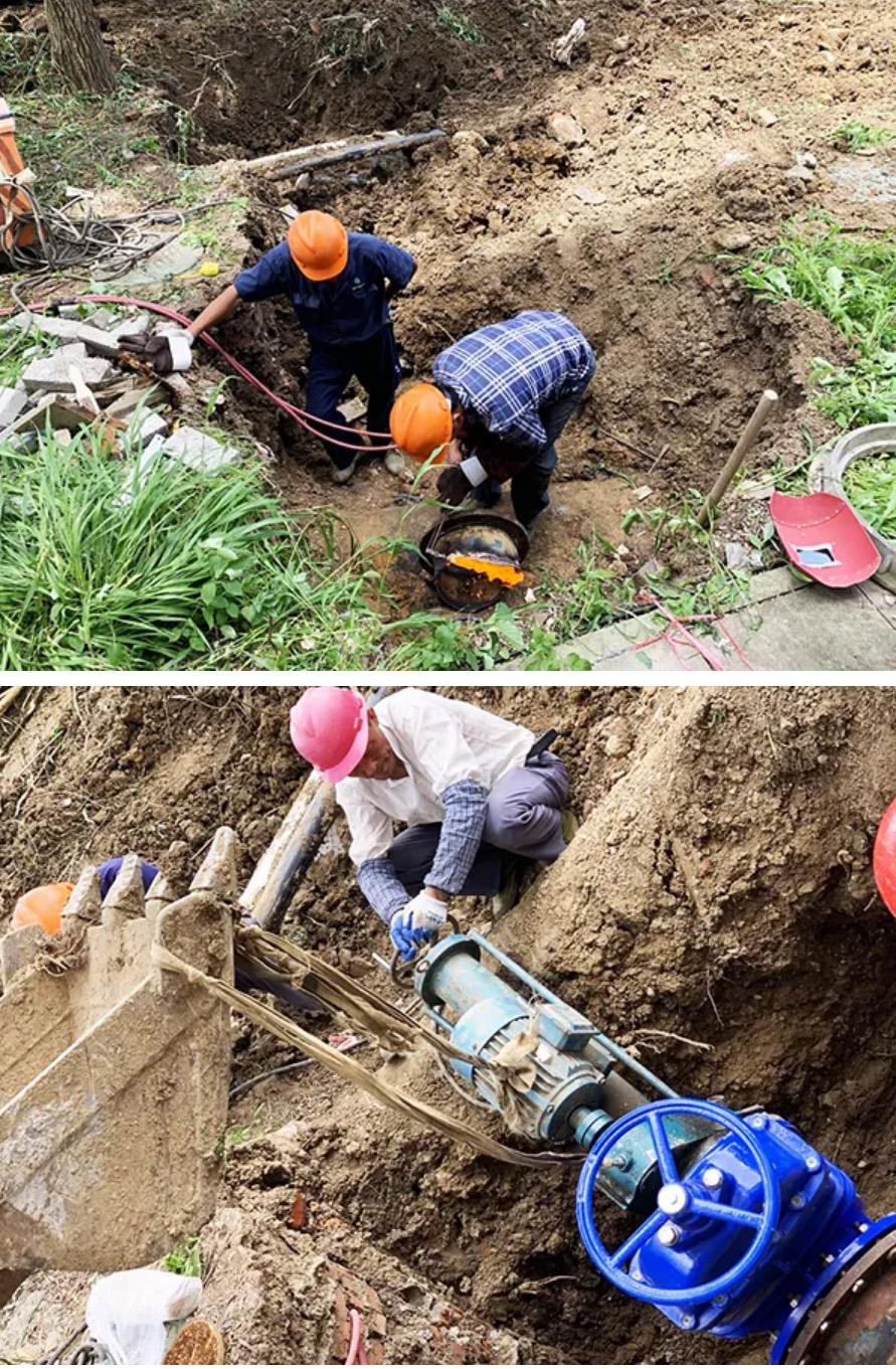 徐舍分公司了解情况以后,及时制定并实施了合理的规划路线,将原立项实施管道的建设方案分开实施,先在DN600的管道上开三通,同时铺设临时管道260米(其中过路开挖100米),解决了用户的用水问题。