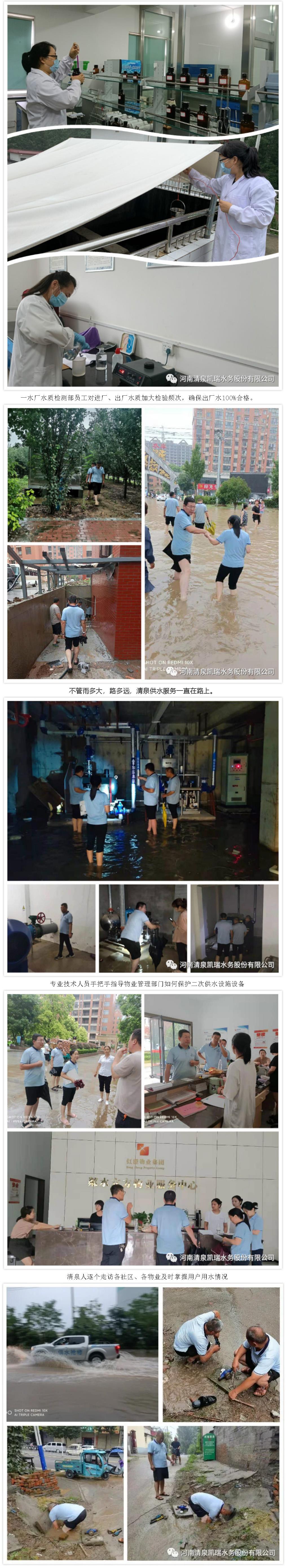 截至目前清泉水务公共供水一切正常,出厂水水量、水压、水质合格率100%,在奋力迎接新一轮暴雨的同时,清泉水务将会在供电正常的情况下全力保障人民群众的安全用水,请大家放心!!