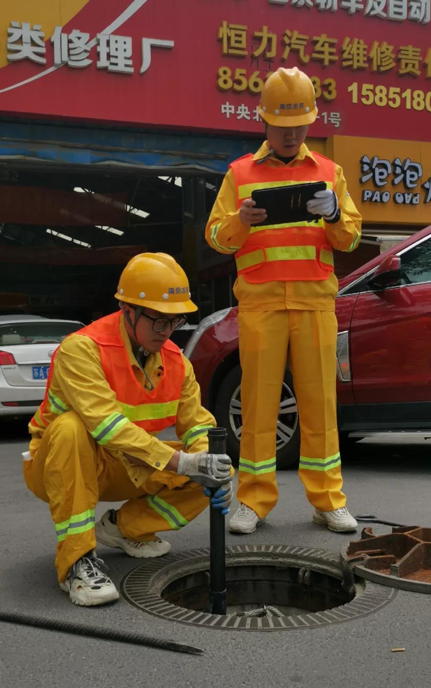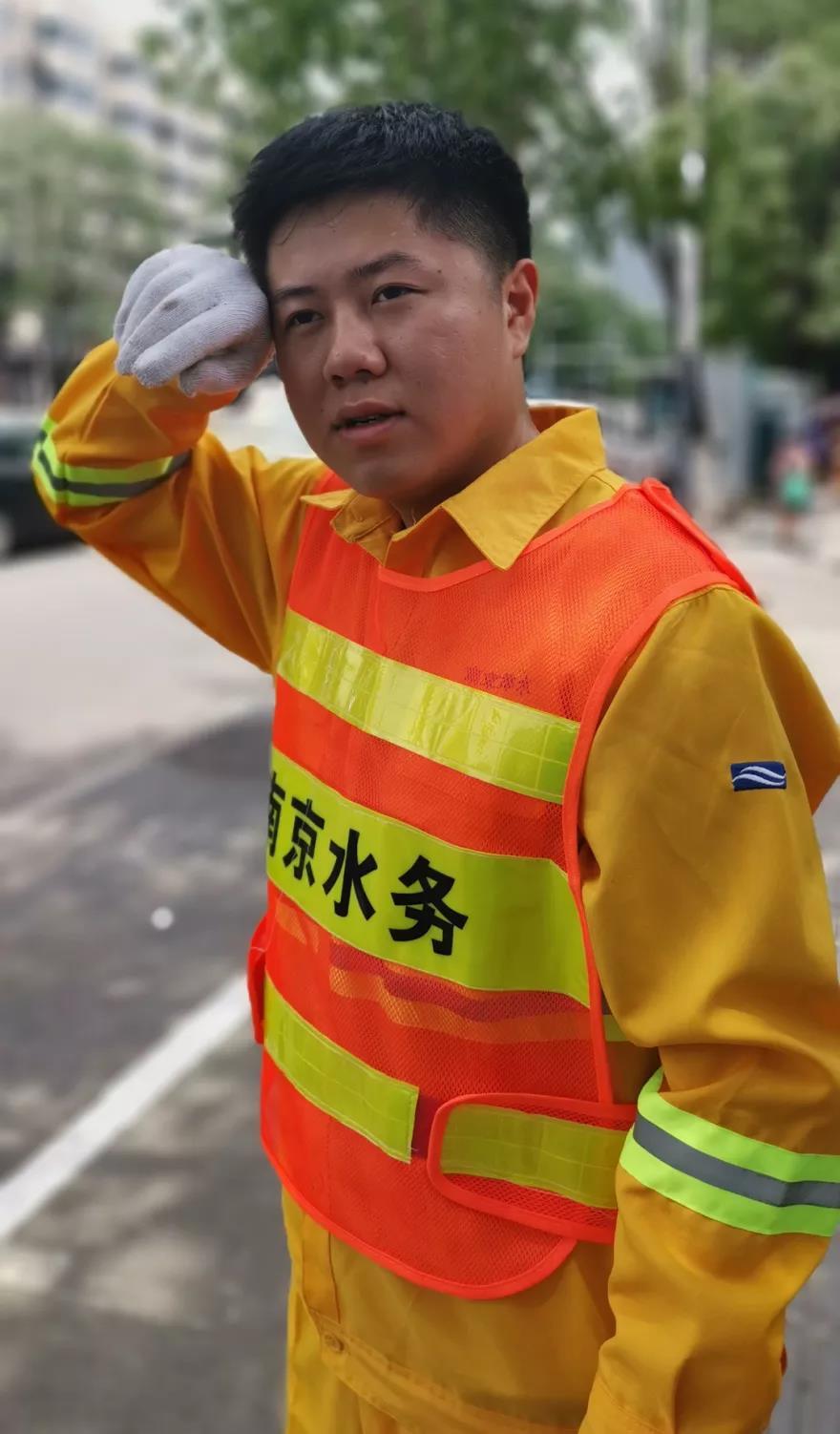 高高的个子,有点腼腆,他就是来自南京水务集团排水设施运营中心的范华钧。烈日下,他和同事正在在井边操作QV,给排水管道“体检”,他的脸上挂满汗珠,身上也湿透了,上周是被雨水打湿,这周是被汗水浸湿,不管暴雨还是酷暑,范华钧与同事们自嘲整个夏季大伙儿都是“湿人”。