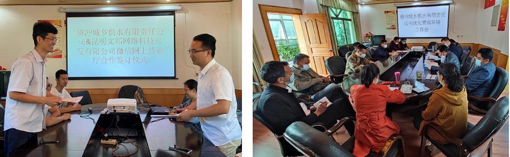 为深入贯彻落实各级政府优化营商环境工作部署,让获得用水全流程更加高效便捷,腾冲城乡供水有限责任公司结合工作实际,从方便用户、优化服务等角度出发,深入优化营商环境,加快推进“智慧水务”建设,于2021年7月2日与昆明文邦网络科技开发有限公司签订合作协议,至2021年7月23日完成了网上营业厅的建设。