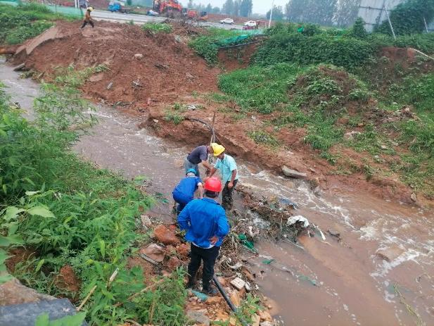 7月21日,暴雨袭击驻马店,驻马店首创厂区坡道西侧截洪沟水量暴涨,河道被杂物淤堵。面对险情,驻马店首创迅速行动,党员干部带头冒雨对河道进行疏通,经过2小时奋战,终于使洪水顺利经过厂区,保障了全体员工的安全。