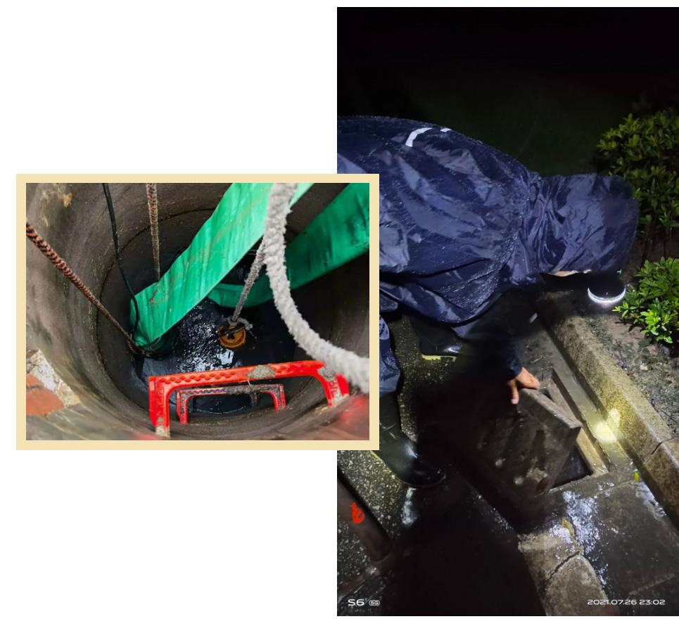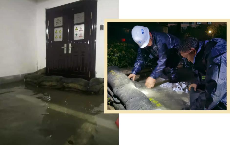 接到消息后,吴江华衍水务立即出动抢修车8辆、抢修人员20余人抵达现场,协同物业对两个地库进口进行封堵,并开启泵房内部排水泵、加固防汛板、密封泥封闭门缝。