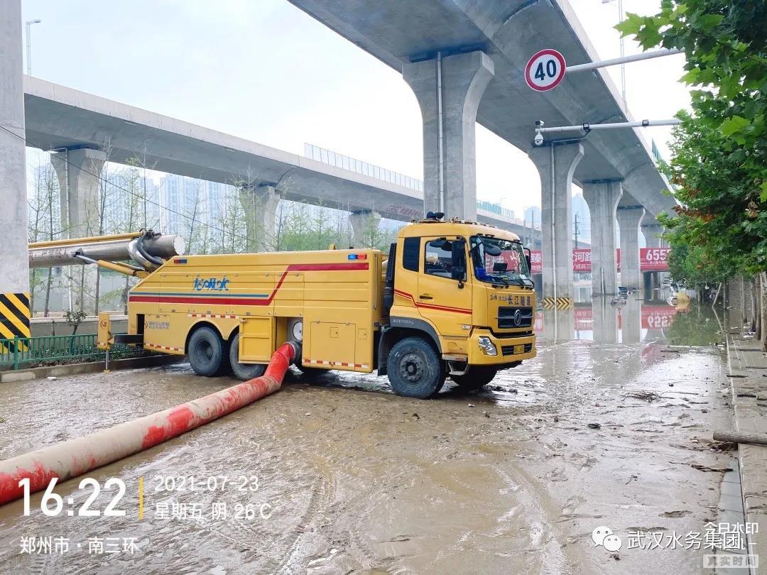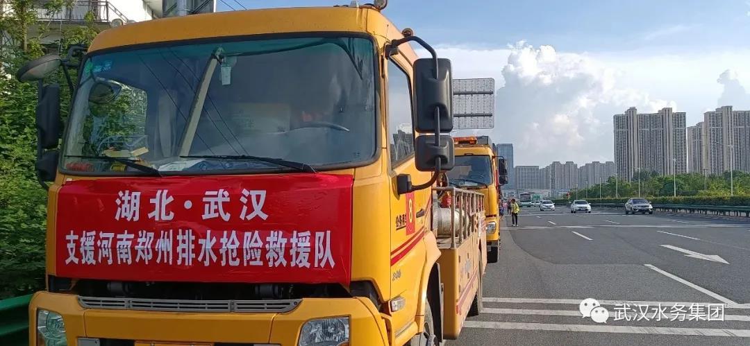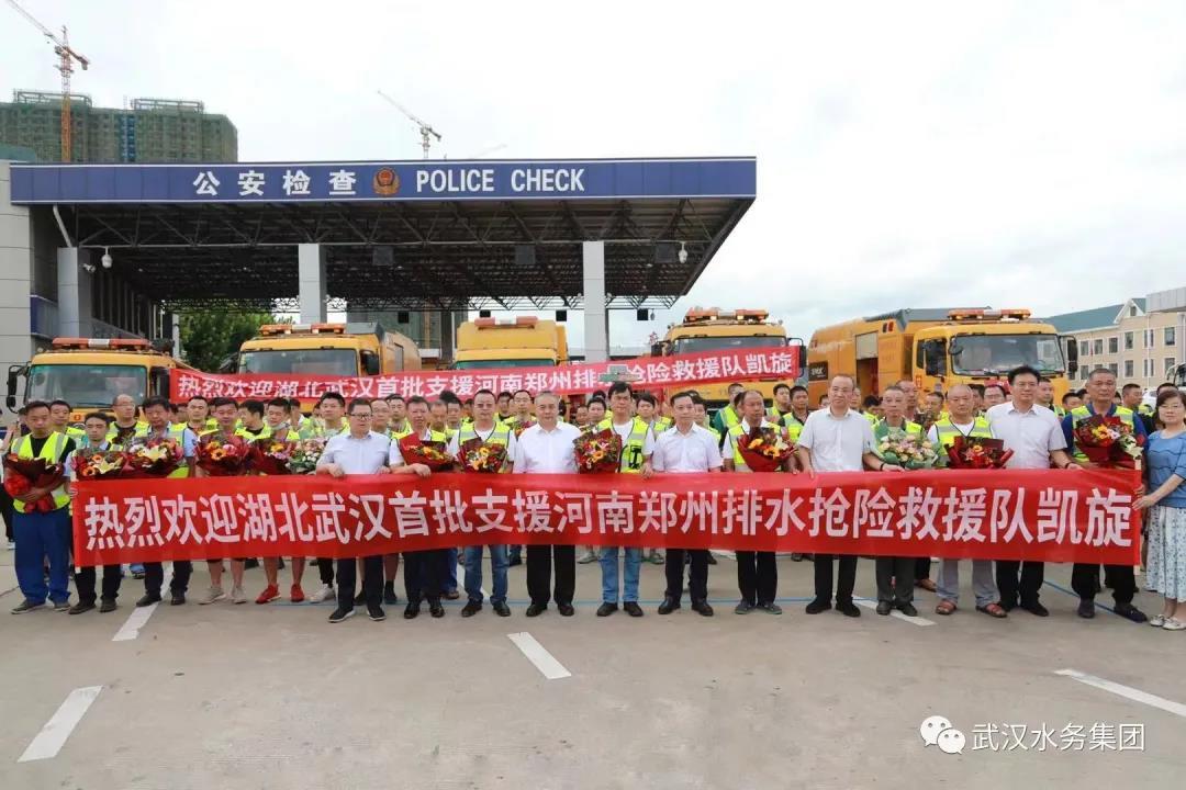 武汉支援河南郑州排水抢险救援队由武汉市统一指挥调度,共集结救援队员108名,16台大型抽排设备(总抽排能力达41300立方米/时),于7月21日18:00从武汉开拔,22日凌晨3:40到达郑州。