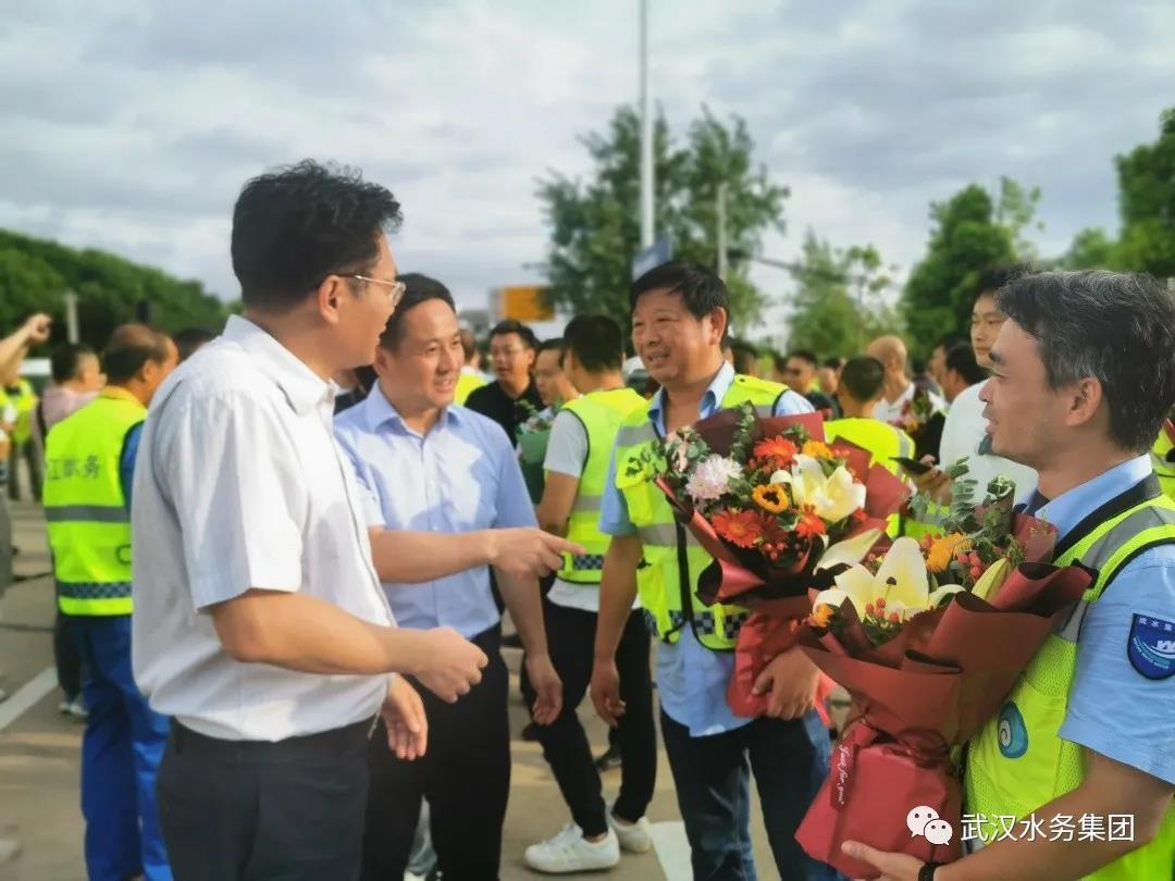 7月28日下午,武汉市城投集团董事长李兵,及所属水务集团总经理周强迎接赴郑州抽排抢险救援队员凯旋。