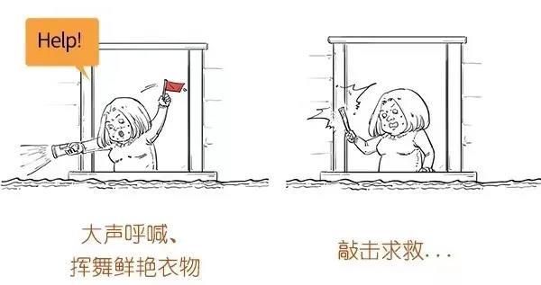 万一积水过深,迅速搜集周围一切可以帮助逃生的物品(如门板、澡盆、救生圈等),向楼顶或高处撤离,等待救援。