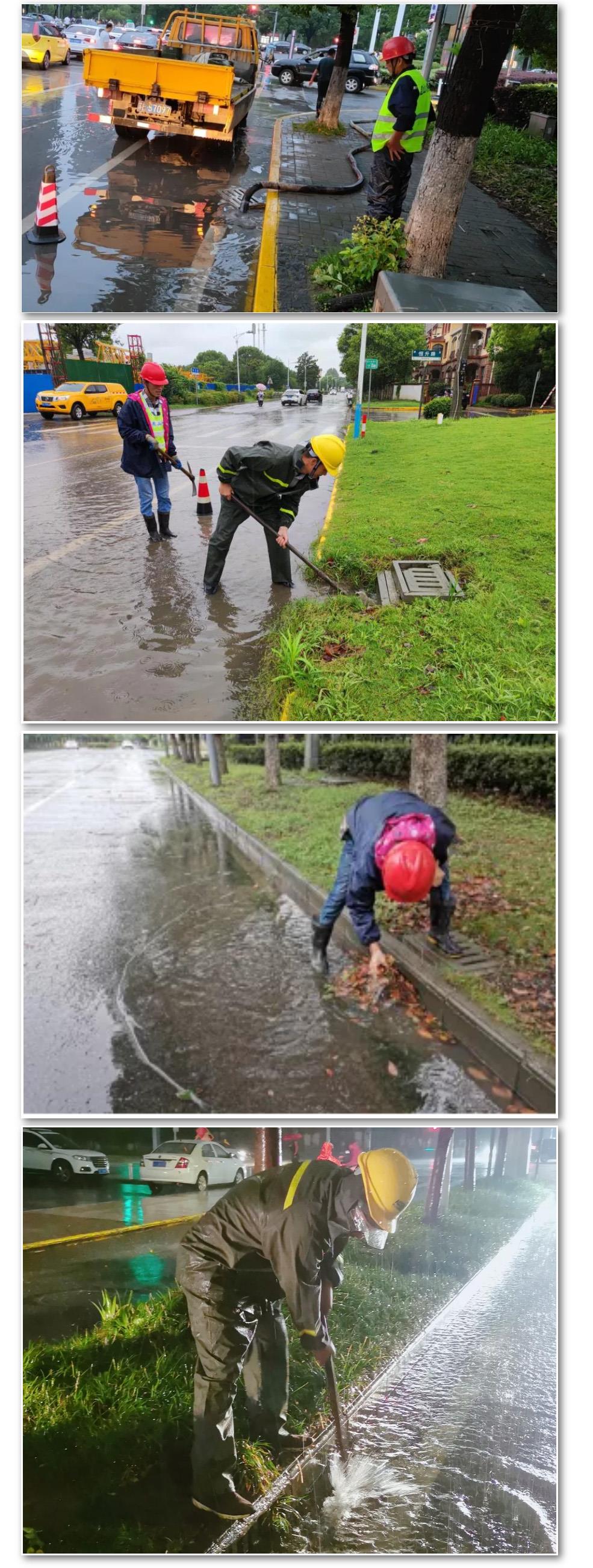 多措并举解决窨井反水、河水倒灌、内街淹水等群众“烦心”的内涝问题。对小区周边河道直排口封堵截流,防止外河河水倒灌,缓解内河压力;通过人工清掏低洼地带泥沙、石砾、枯叶等杂物,解决短时间降雨量大造成排水管道堵塞问题;快速处置污水窑井喷冒情况,并设置围挡防护和警示灯,确保行人安全;根据中环内道路积水程度,在7个点位设置机械设备进行排水疏通,保障市民上下班高峰顺利通行。台风登陆以来,共计出动抢险543人次、208车次,应急处置积水点225处。