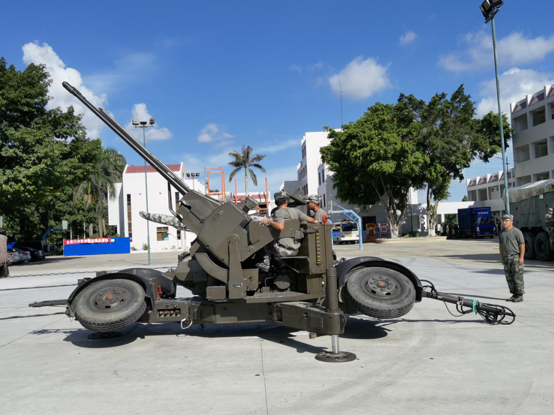 “炮后就,向中看齐,向前看”。粤东大地骄阳似火,一场实战背景下的民兵防空演练正在展开。雷达飞旋,电机轰鸣,高炮一字排开。伴随着指挥员的一声声指令,民兵迅速就位,启动电机、架设炮位、操纵键盘……经过一系列密切配合,数台不同型号的武器装备张弓搭箭、蓄势待发。