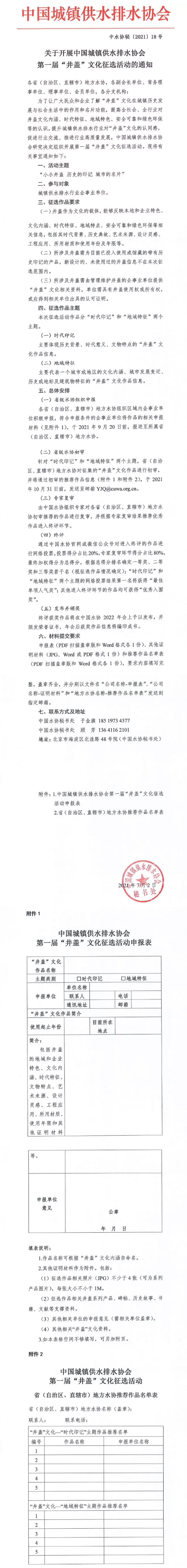 为了让广大民众和企业了解“井盖”文化在城镇历史发展与社会生活中的作用和名片功能,提高全社会、全行业对井盖文化内涵、时代特征、地域特色、安全可靠和绿色环保等的认识,提升城镇供水排水行业对“井盖”文化的认同感,促进行业交流、推进行业高质量发展,星空体育ios下载 研究决定组织开展第一届“井盖”文化征选活动。现将有关事宜通知如下: