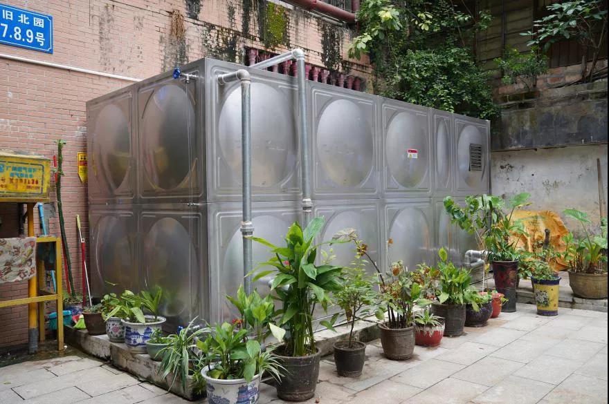 位于广州市越秀区蟹岗道26、28号和旧北园7、8、9号是两个相邻的小区,均建设于2000年前。早些年间,小区周边住宅楼较少且多为低楼层,楼宇废弃二次供水设施后,市政供水压力仍可以将自来水直供上顶楼供用户使用。然而随着城市发展,周边新建楼宇增多,用水需求持续增加,市政压力波动不能保证高层用户稳定用水。重新建设二次加压设施因无物管牵头组织,难以由居民集资进行修缮。