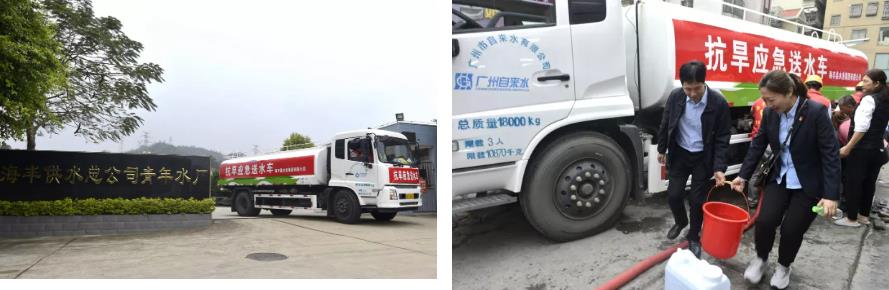 2020年4月,为解决海丰人民群众用水燃眉之急,广州自来水公司紧急调配2台容量10吨的应急供水车,连夜出发赶往海丰县支援。送水车解决了群众的基本用水需求,极大地缓解群众焦虑的情绪,得到了群众的一致好评。