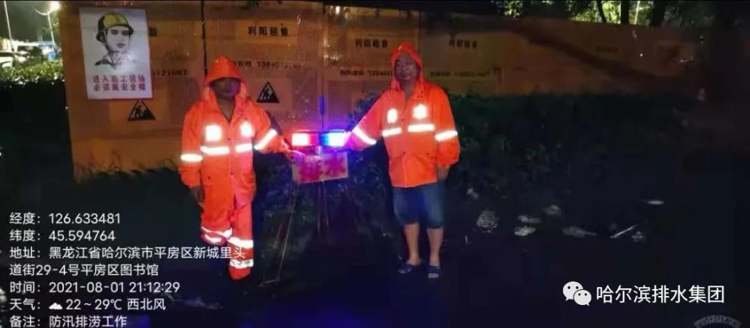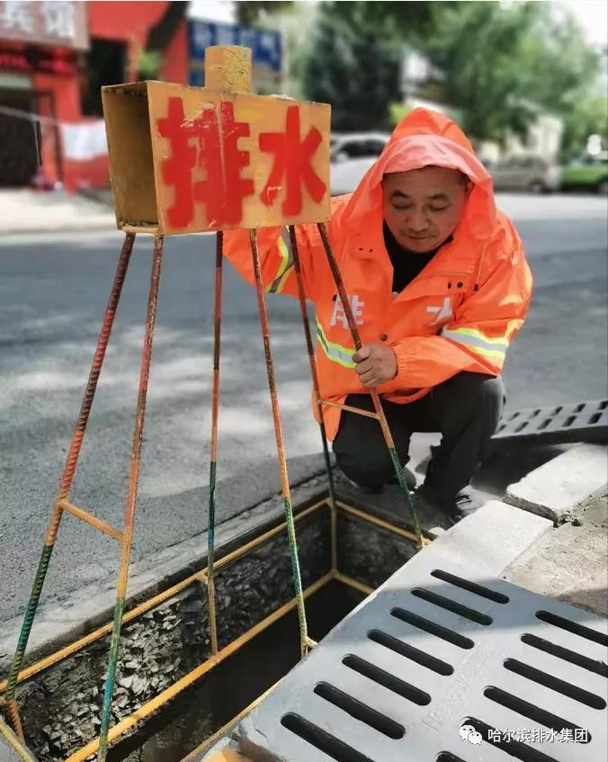 雨一直下,风还在肆虐,担心雨水井再次被树枝等垃圾杂物堵塞而影响水流下泄速度,耽误周边居民和车辆正常通行,他又蹚水来到雨水井旁观察井口的动向,准备随时清理堵塞物。穿在身上的雨衣湿透了,雨靴里灌满了雨水,风大雨狂,冻得瑟瑟发抖,但他和队员们没有退却,为守护百姓安全出行,作为哈排人,大家始终坚守“路面积水不撤,排涝人员不撤”的排水承诺。
