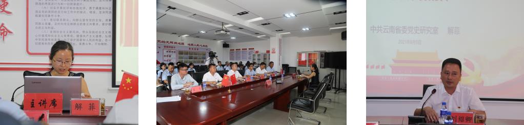 解菲副处长以第一位云南籍共产党员王复生,社会进化简史编著人张伯简,清华学校(现清华大学)“最有光荣的儿子”施滉的先进事迹;云南第一个成立的党组织—中共云南特别支部的艰苦斗争历程及党在遵义会议中生死攸关的转折点和扎西镇江西会馆战略决策等为党员们讲述了党在云南的伟大实践。