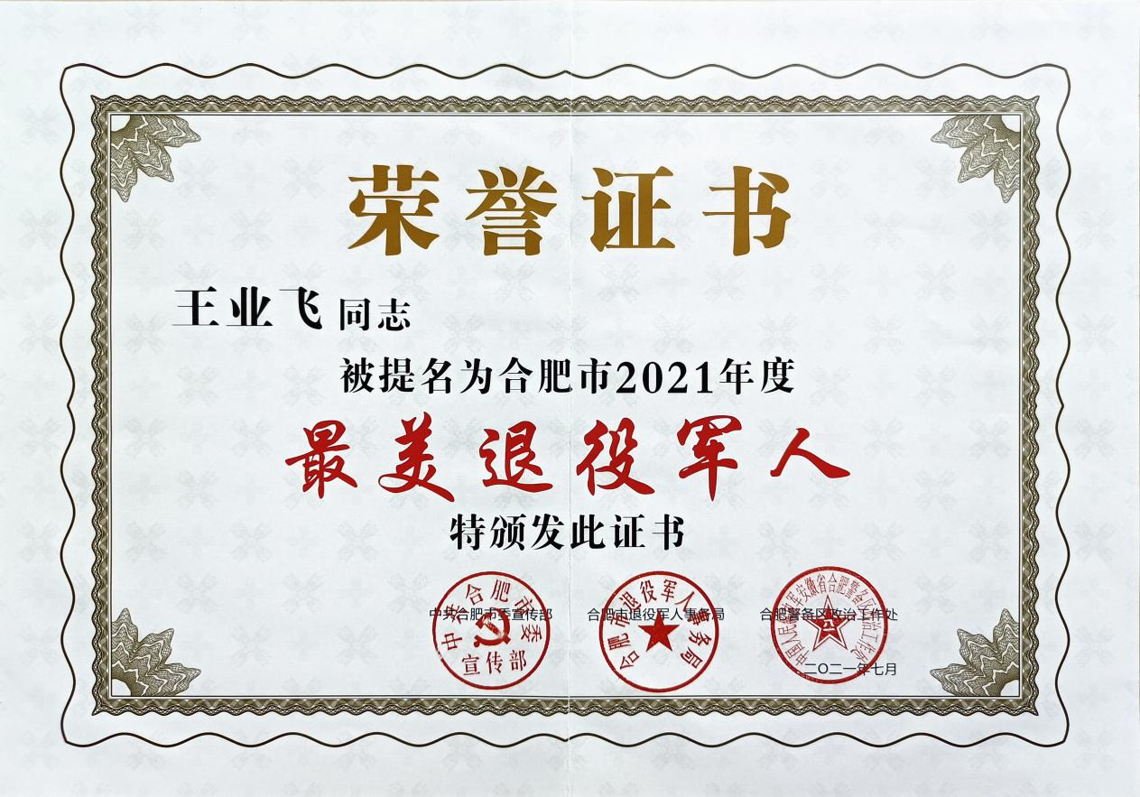 近日,从合肥市委宣传部、合肥市退役军人事务局、合肥警备区政治工作处获悉,经广泛发动、层层推选、严格遴选,合肥供水集团第六水厂维修班班长王业飞被提名为合肥市2021年度“最美退役军人”。