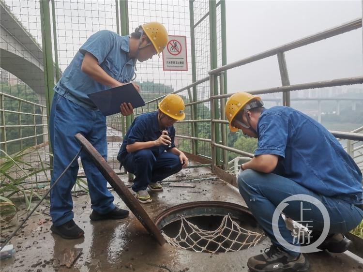 “暴雨天气,道路更容易出现积水,因此我们的工作更要细致,特别是要关注管网是否出现淤积堵塞渗漏情况。”邹俊说,当天他们首先检查了厂区出水口及溢流口的排水情况,并上报相关职能部门。管网巡视期间,还着重巡查地势低洼地段的管网设施,查看是否出现渗漏、损坏情况;高边坡地段,是否因暴雨冲击,引起该区域发生地质滑坡塌陷等隐患。此外,他们还要巡查、取样区域内二级污水管网接入口水质,对水量情况进行监测。