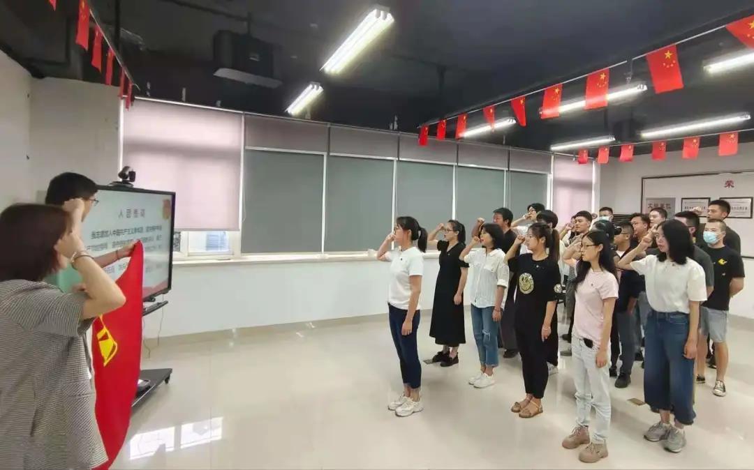 随后全体团员重温了庆祝中国共产党100周年大会上共青团员和少先队员的集体献词。