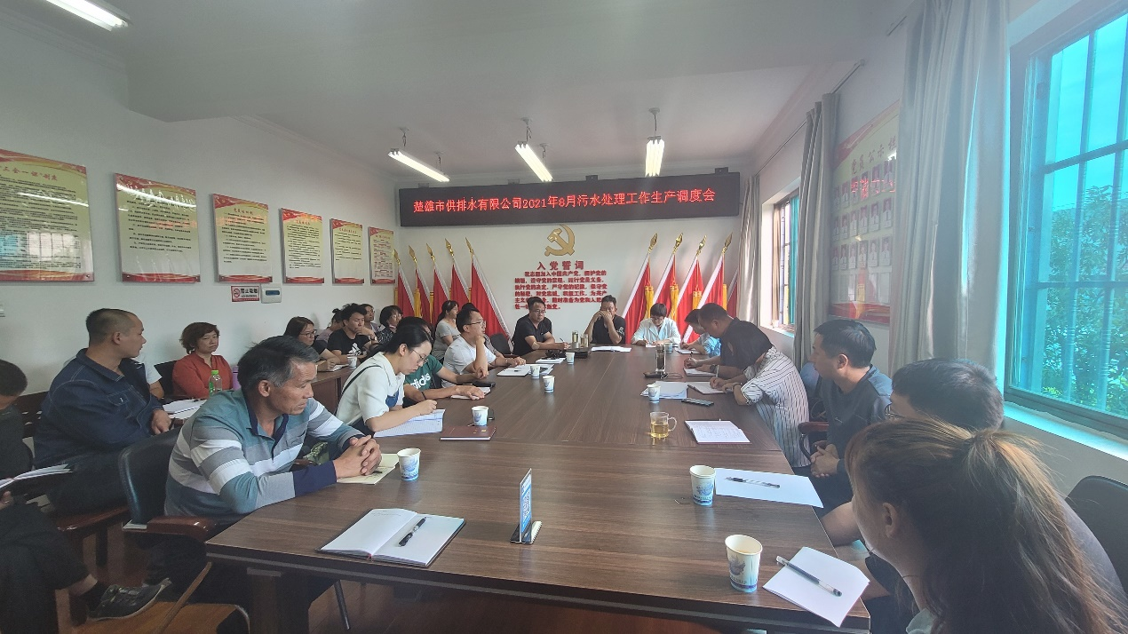 近日,楚雄市供排水有限公司8月污水处理工作生产调度会在第一污水处理厂会议室召开,第一污水处理厂、第二污水处理厂、动力设备部、磐源公司、办公室、纪检监察室等部门负责人及相关工作人员参加会议,副总经理莫丽、7月带班领导李梅群出席会议,总经理袁小华主持会议。