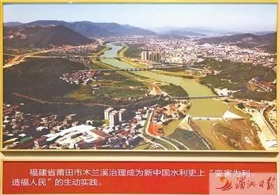 在“不忘初心、牢记使命”中国共产党历史展览中,还有两张关于木兰溪治理的照片,其中,一张是1999年12月27日,习近平同志在木兰溪下游防洪工程现场参加义务劳动的珍贵画面;另一张照片是直观反映木兰溪治理成果的照片,图片说明写着“福建省莆田市木兰溪治理成为新中国水利史上‘变害为利、造福人民’的生动实践”。木兰溪治理的“红色印记”在展馆内熠熠生辉,见证了中国共产党带领人民群众为确保江河安澜所进行的不屈不挠斗争。